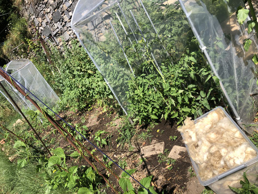 La visione è quella di nutrirci con ciò che coltiviamo noi stessi, oltre che con uova e latte (prodotti) provenienti da un allevamento rispettoso degli animali. Non vedo le piante come “colture” e gli animali non come “bestiame”, ma come nostri partner. Ci nutriamo a vicenda in un equilibrato “dare e ricevere” in amore, rispetto e gratitudine! Per me, quando si tratta di cibo, gratitudine significa essere consapevole che la terra, l'acqua, le rocce, il sole, l'aria e l'etere nutrono e producono le piante che nutrono me e gli animali, che a loro volta nutrono me e gli altri.