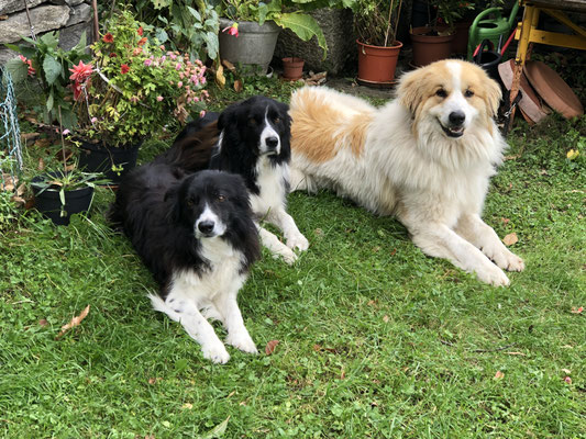 Potrete fare una pausa più lunga con noi. Durante questo periodo vivrete con me e i miei 3 cani da pastore. I due border collie Billy e Sheriff dormono al piano di sotto, in cucina, mentre Bambi, il nostro cane da montagna dei Pirenei, dorme fuori e protegge la sua famiglia. Purtroppo non posso avere cani estranei in casa, perché portano disordini nel mio branco. Facciamo quello che dobbiamo fare ogni giorno per mantenere questo posto meraviglioso, gli animali e il giardino.